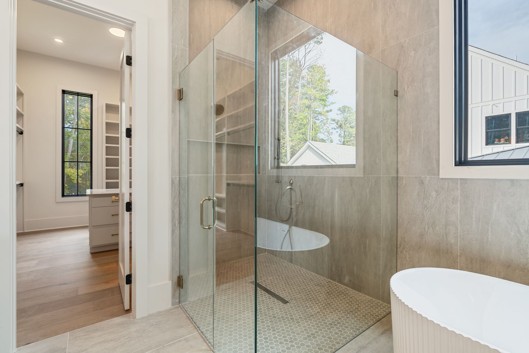 This exceptional new home is complete and ready for move-in, offering a rare opportunity to own one of downtown Alpharetta’s most desirable residences. The custom floor plan was thoughtfully designed to maximize the beauty and functionality of its level lot, creating an effortless connection between indoor and outdoor living. Every detail reflects refined luxury, from the designer finishes and energy-efficient features to the expert craftsmanship throughout. The home offers five spacious bedrooms, including a primary suite on the main level and a secondary guest suite with a private bath. Upstairs are three additional bedrooms, each with its own ensuite, along with a large bonus room featuring a full bath that can serve as a sixth bedroom or flexible living space.